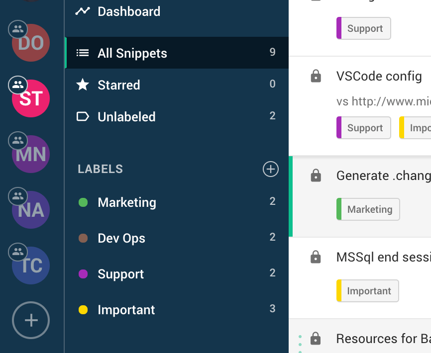 Use team libraries and labels to organize project knowledge. Every member views and contributes to the same set of snippets.